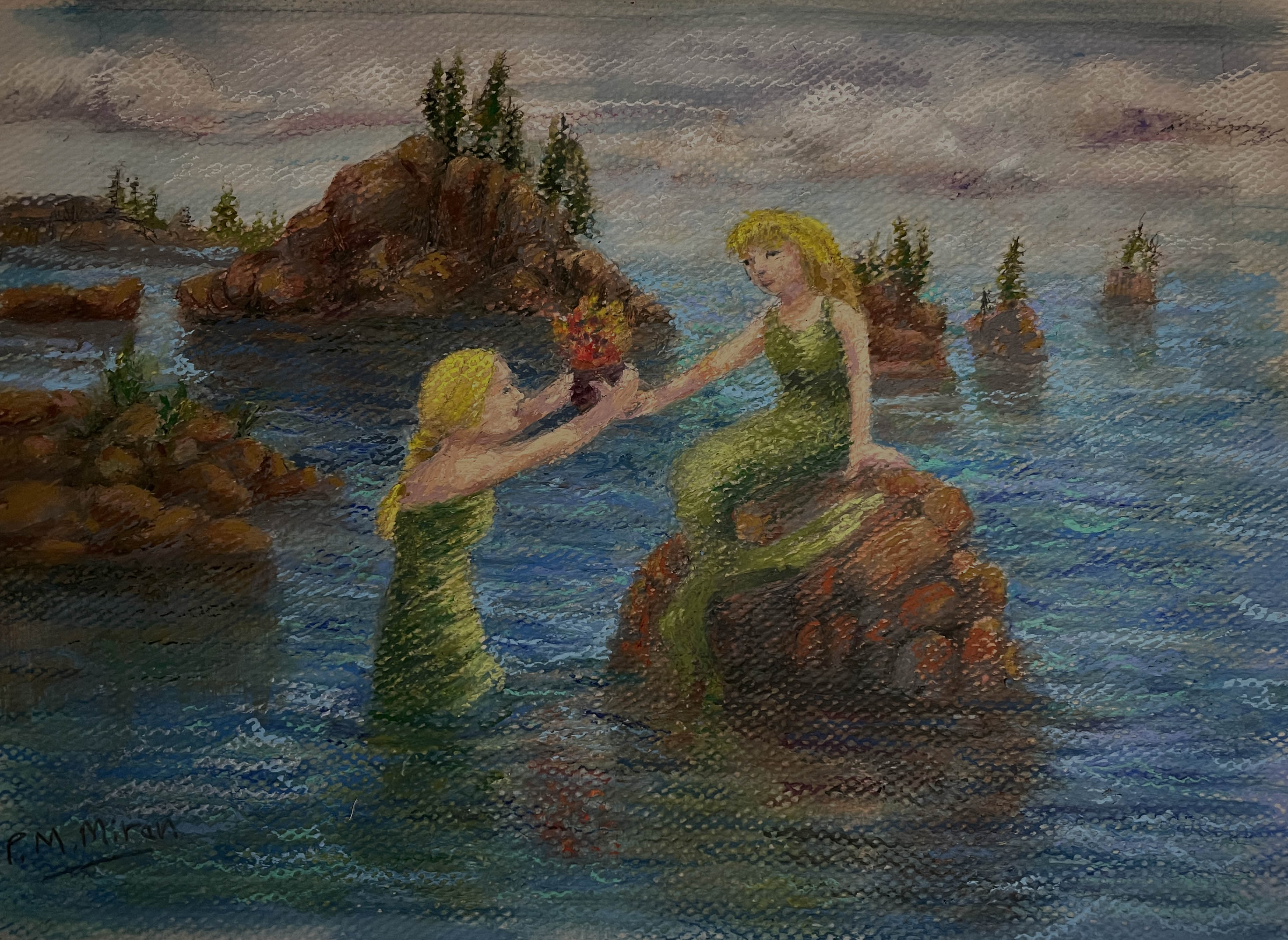 Friendship, c. 2022, oil pastel 9 X 12